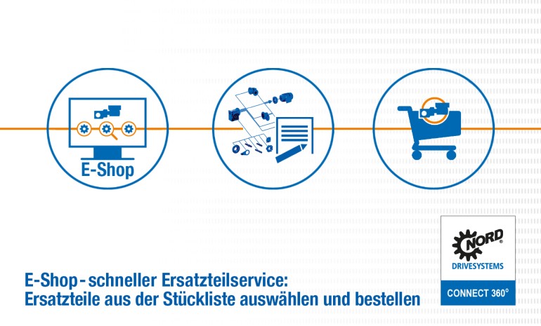 Im NORD E-Shop können sich Kunden die aktuelle Stückliste ihres Antriebs anzeigen lassen. Aus dieser kann das benötigte Ersatzteil ausgewählt und direkt online bestellt werden. So einfach und schnell war der NORD-Ersatzteilservice noch nie.