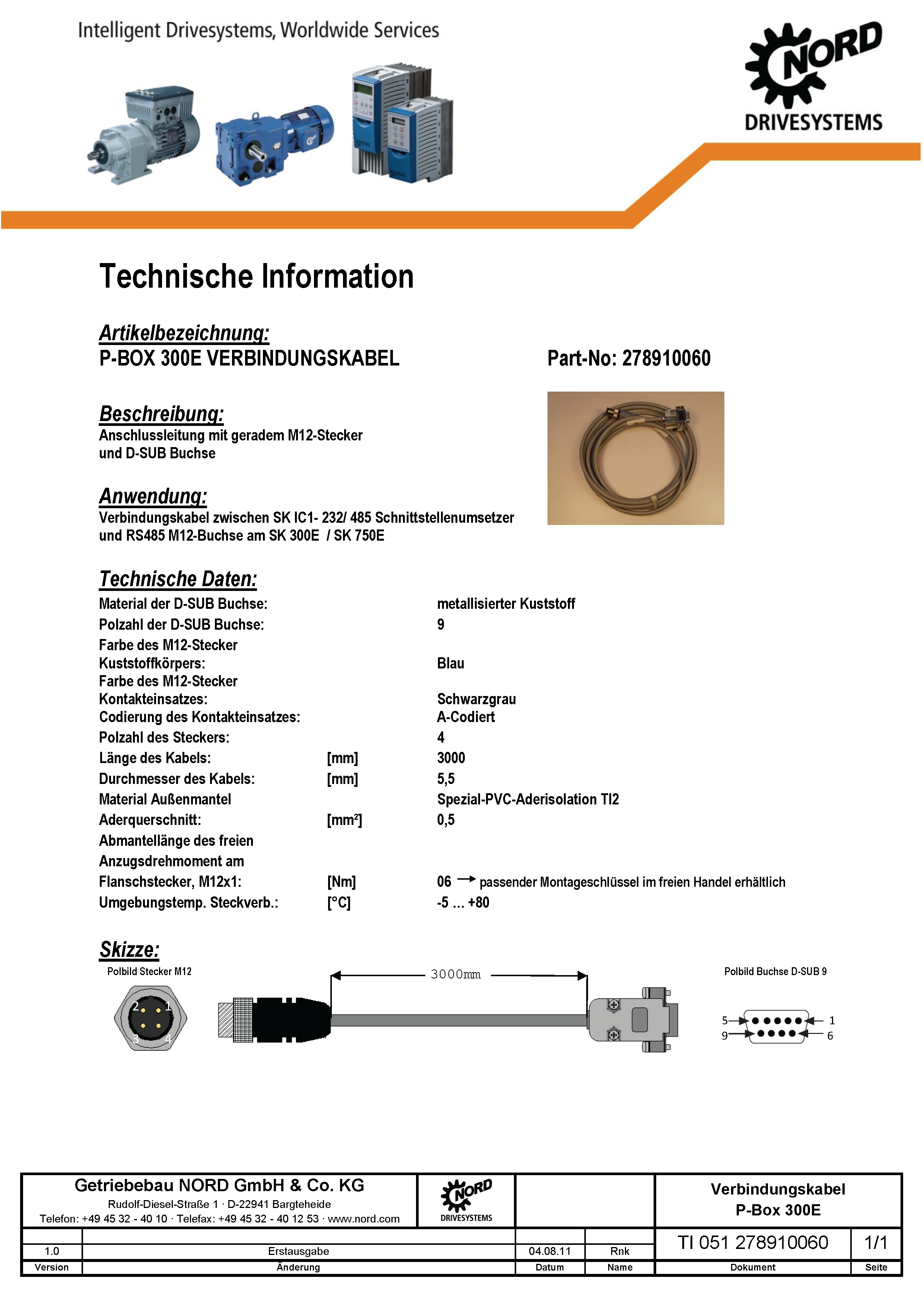 Technische Information / Datenblatt - Verbindungskabel P-Box 300E