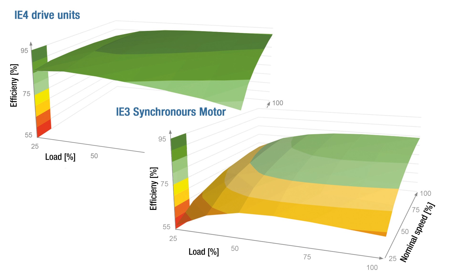 The goal, however, is not to reduce versions as far as possible since project costs can escalate above a certain threshold. In addition, a small number of versions leads to reduced efficiency of the drives used due to more frequent overdimensioning. It is therefore important for projects to find the optimum mix of the version number-dependent costs for investment, operation (administration, service, spare parts stocking) and energy. A balanced combination of version reduction and energy efficiency can lead to high TCO reductions. Drive systems, that are included in NORD DRIVESYSTEMS modern range of high efficiency products, unite the advantages of both optimisation strategies.