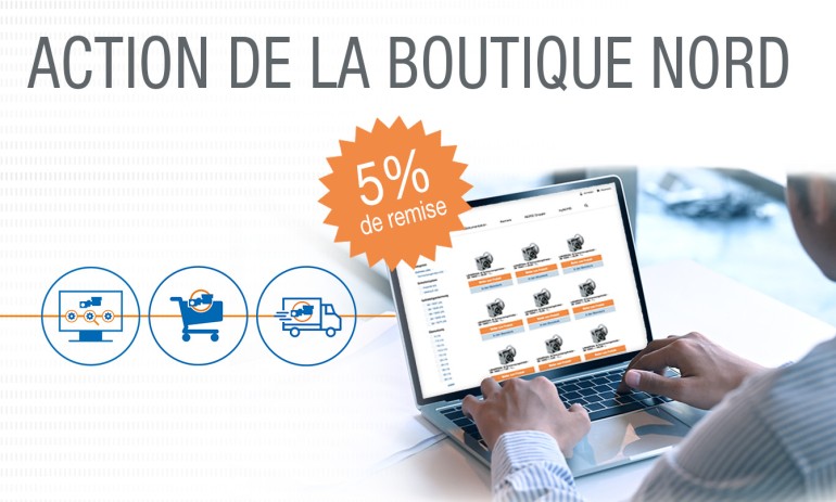 Pendant la période comprise entre le 14 février et le 13 mai 2023, NORD DRIVESYSTEMS accorde une remise de 5 % sur les commandes effectuées en ligne dans la boutique NORD. Cette offre est valable dans les pays suivants : Danemark, Suisse, Espagne, Autriche, Pologne, Pays-Bas et Allemagne. Cette offre ne s’applique pas aux produits et accessoires de la catégorie des systèmes électroniques d'entraînement.