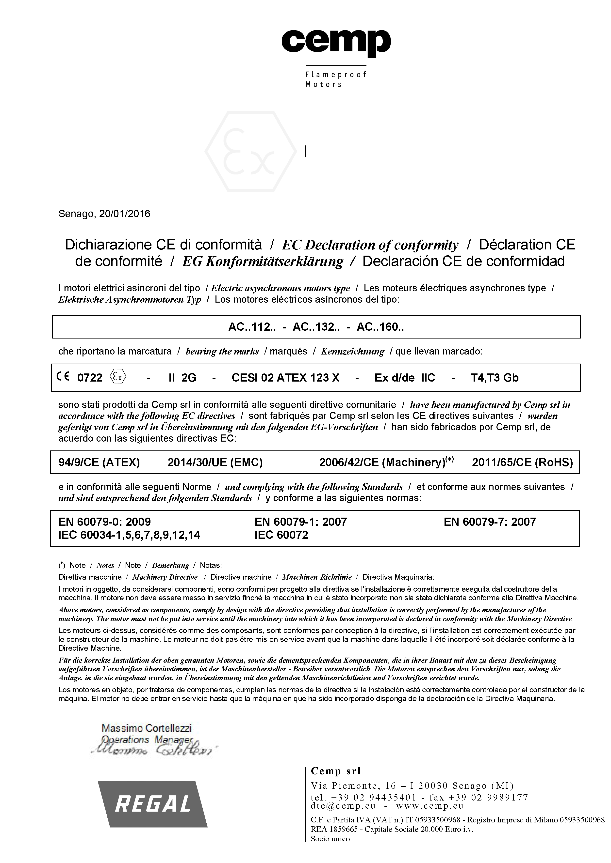 Déclaration de conformité CE – ATEX 2G| Moteurs CEMP – Protection contre les gaz explosibles Ex d, Ex de
