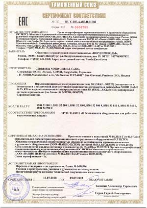 Certificato di conformità EAC per motori NORD antideflagranti – zone 1 e 2_n. 01082